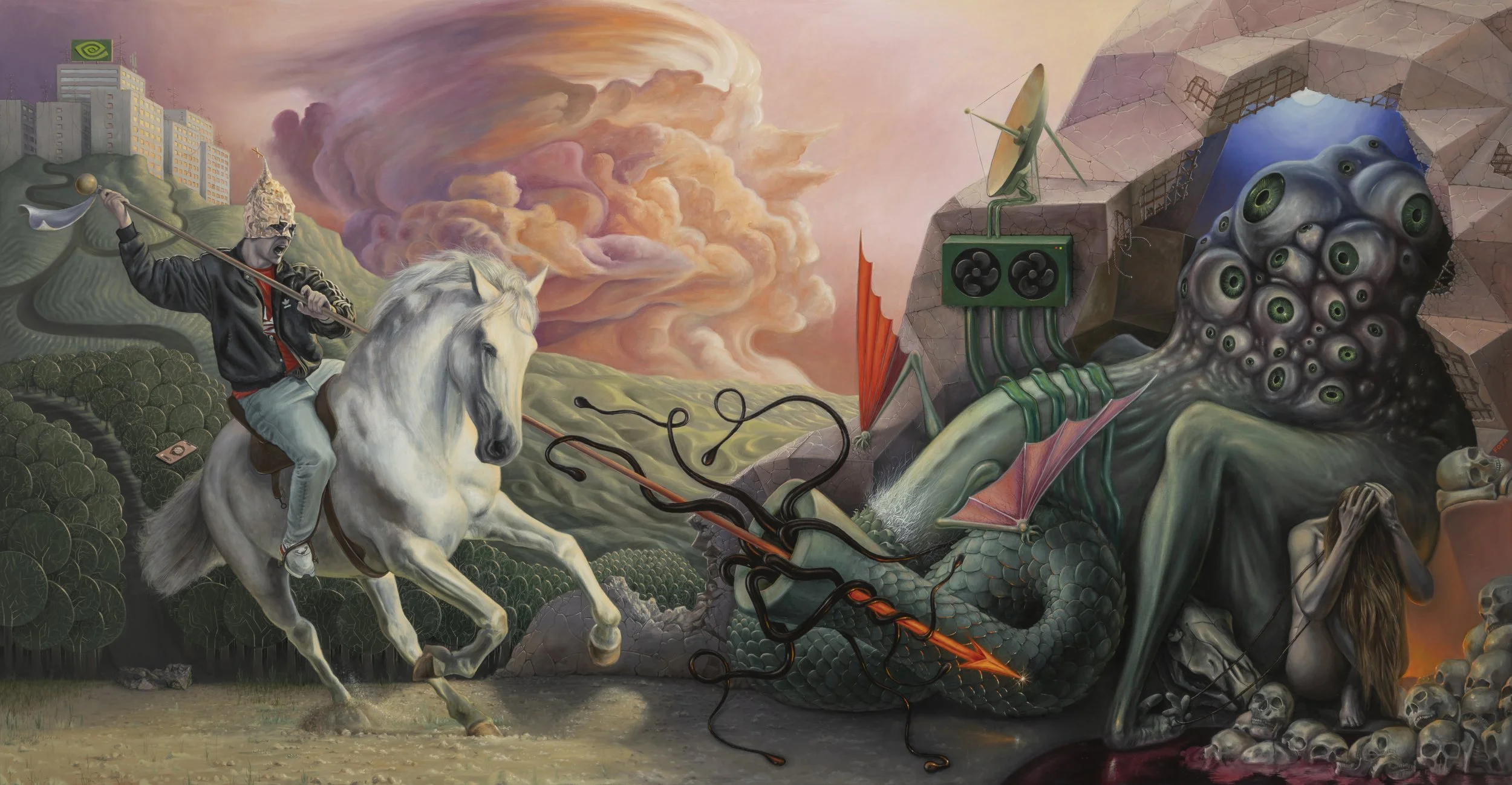 "CUDA Beast", 2025, Oil on linen, 86x165 cm. Available, contact Victor for more details.