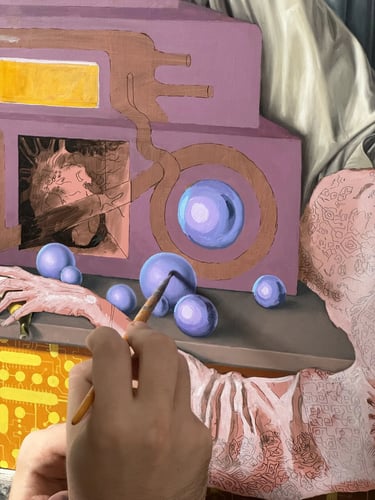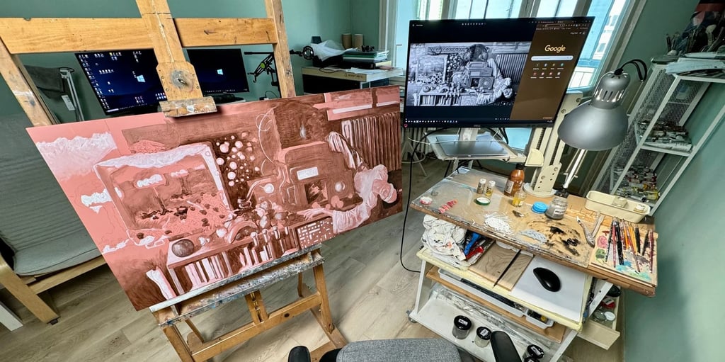 The full behind-the-scenes creative process of making "Collectivization", an oil painting on custom made aluminium/aluminum panel.