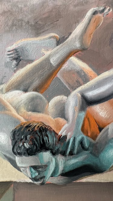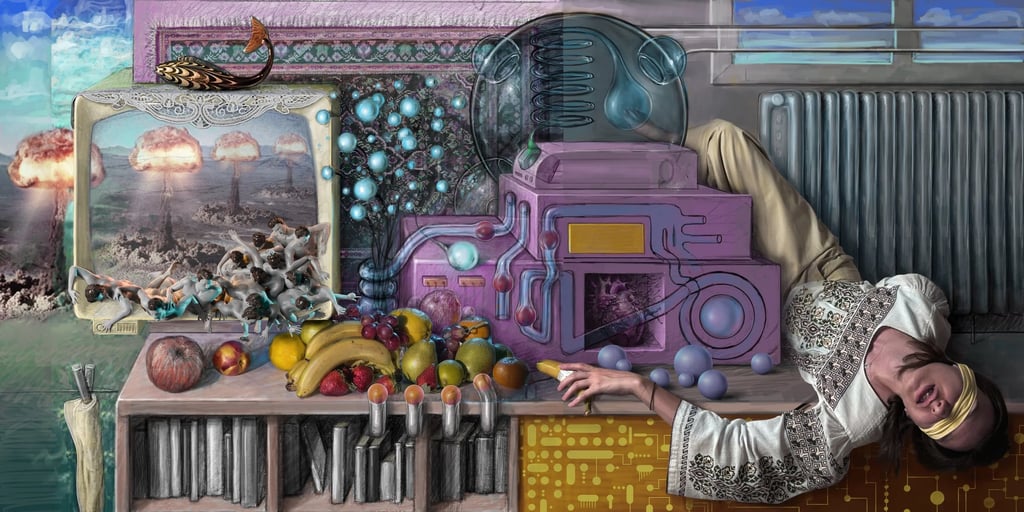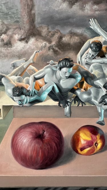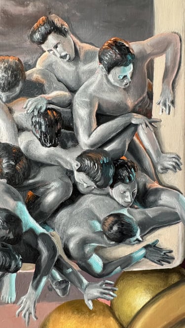 Not often does it happen that I begin a painting with just a simple doodle, with no clear plans or direction in mind as the concept is concerned. This way of starting is a unique experience that allows for spontaneity and creative exploration, making the process both exciting and unpredictable. That is the case with Collectivization. Usually, I have a specific concept in mind before I begin the process of sketching my ideas, but not in this case, this made this one project a bit more special.