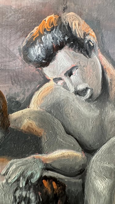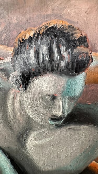 In the middle of 2024 I had the urge to make another painting on a custom-made aluminium panel, so I went into my sketch book to search for some inspiration for this new project. I consider each painting as a standalone project because the process implies many stages and takes my full attention for months, no painting is considered just routine. Through my handful of sketches, one peaked my interest, it was a sketch I made a few months earlier from my imagination. img. 1