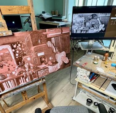 Img. 14 - A shot from the studio showing the finished Underpainting.